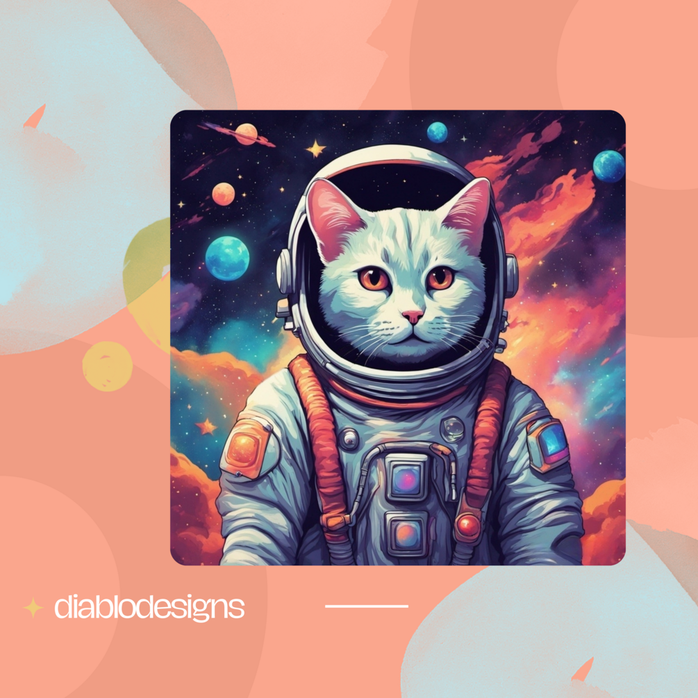 - SpaceCat Splendor: At the heart of this design is a charismatic cat adorned in a meticulously detailed astronaut suit, ready to conquer the cosmos. The cat's curious expression adds an element of wonder and charm to the overall composition.