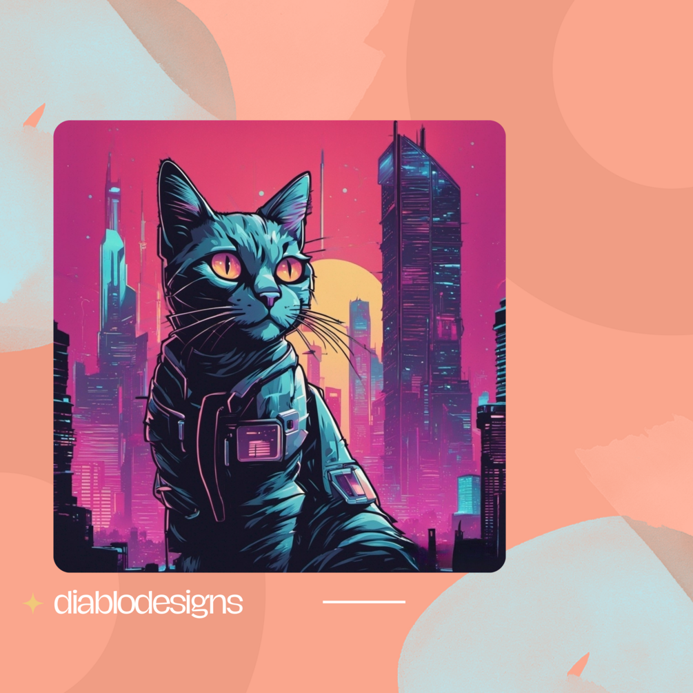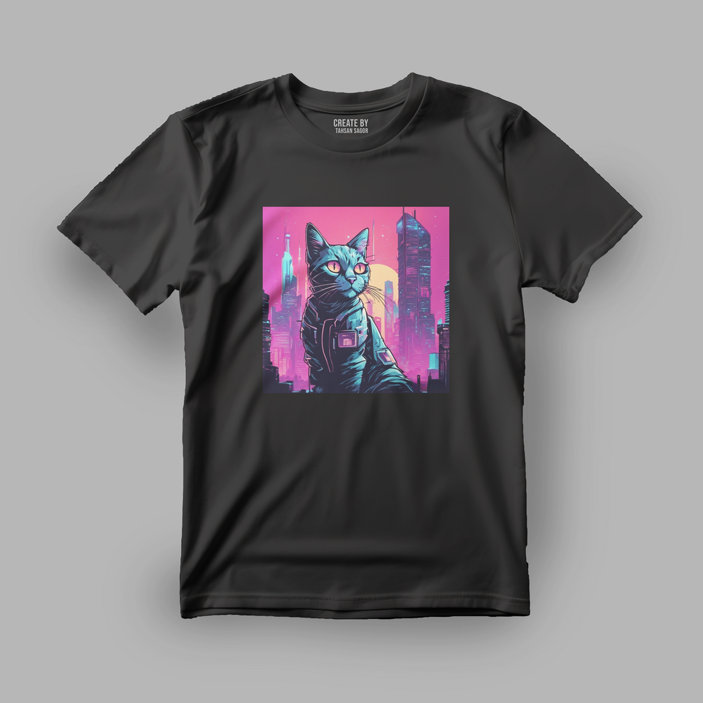 PRINTABLE DESIGN FUTURISTIC CITY CAT CYBERCAT